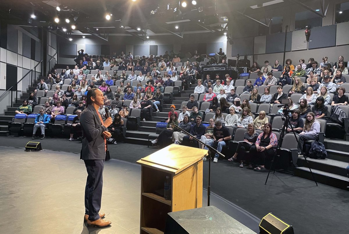 Students at New Sarepta Community High School, Leduc Composite High School, Ohpaho Secondary School, and École Secondaire Beaumont Composite High School gathered to hear Delorme’s profound message about truth and reconciliation – delivered not as a lecture, but through personal stories that invited listeners to reflect on their place in a nation striving for greater equity and inclusion. He offered a way of seeing the world that invited students to be more thoughtful, to question what they know, and to consider what it means to belong to a nation striving for true equity, inclusion, and acceptance.