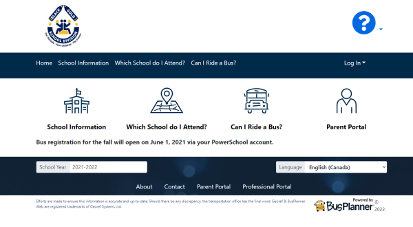 BusPlanner provides parents and guardians with information about their child’s bus route, as well as designated school information and transportation eligibility. Click the image below to be re-directed to the BusPlanner website.
